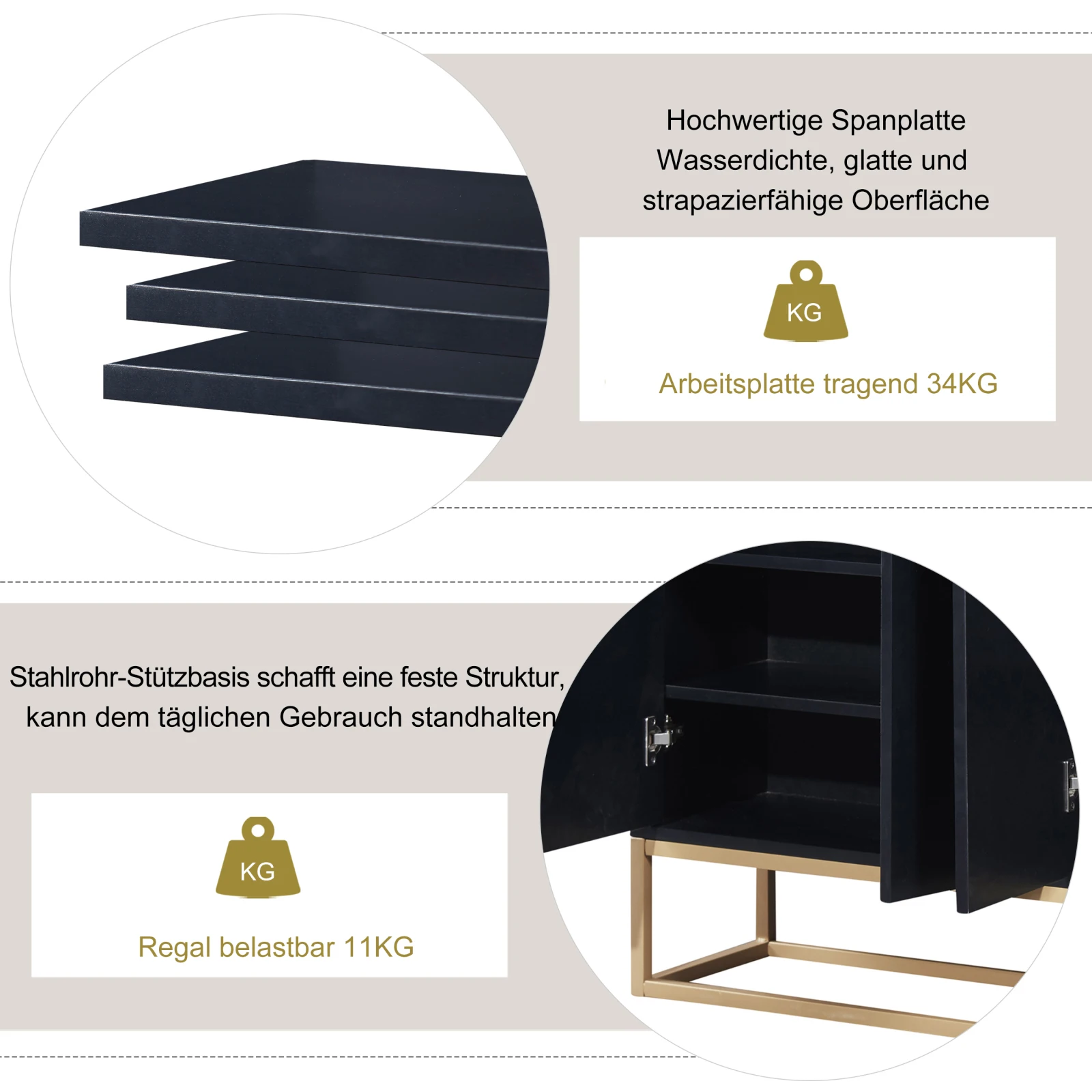 • Modernes & minimalistisches Design: Glatte, griffloses Front-Design mit stabiler Metallbasis – passt perfekt zu zeitgemäßen Einrichtungskonzepten.