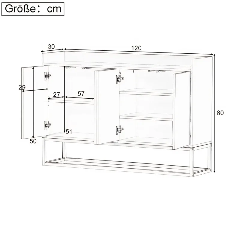 • Abmessungen: 120 × 30 × 80 cm (L × B × H).